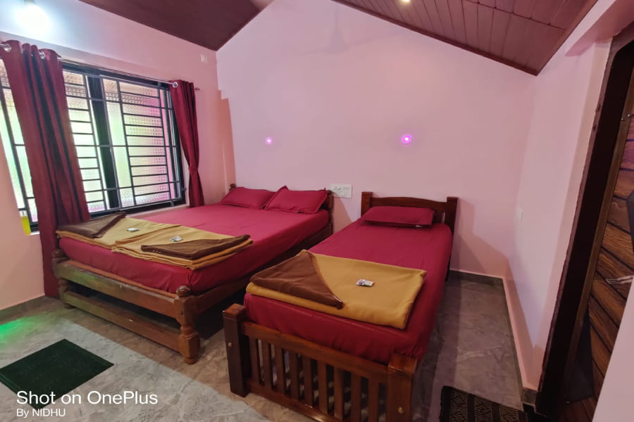 The Triple Bed Room at Beach Nest Gokarna is designed to comfortably accommodate families and small groups, offering a perfect balance of space, convenience, and relaxation. Featuring a well-arranged sleeping setup with comfortable beds and quality linens, the room ensures a restful stay for all guests. The interiors are thoughtfully planned with warm tones, natural ventilation, and a welcoming ambiance that reflects the calm coastal charm of Gokarna. Equipped with essential amenities and maintained to high standards of cleanliness, the Triple Bed Room provides a peaceful retreat after a day of beach visits, sightseeing, or spiritual exploration, making it an ideal choice for those seeking comfort and togetherness during their coastal getaway.